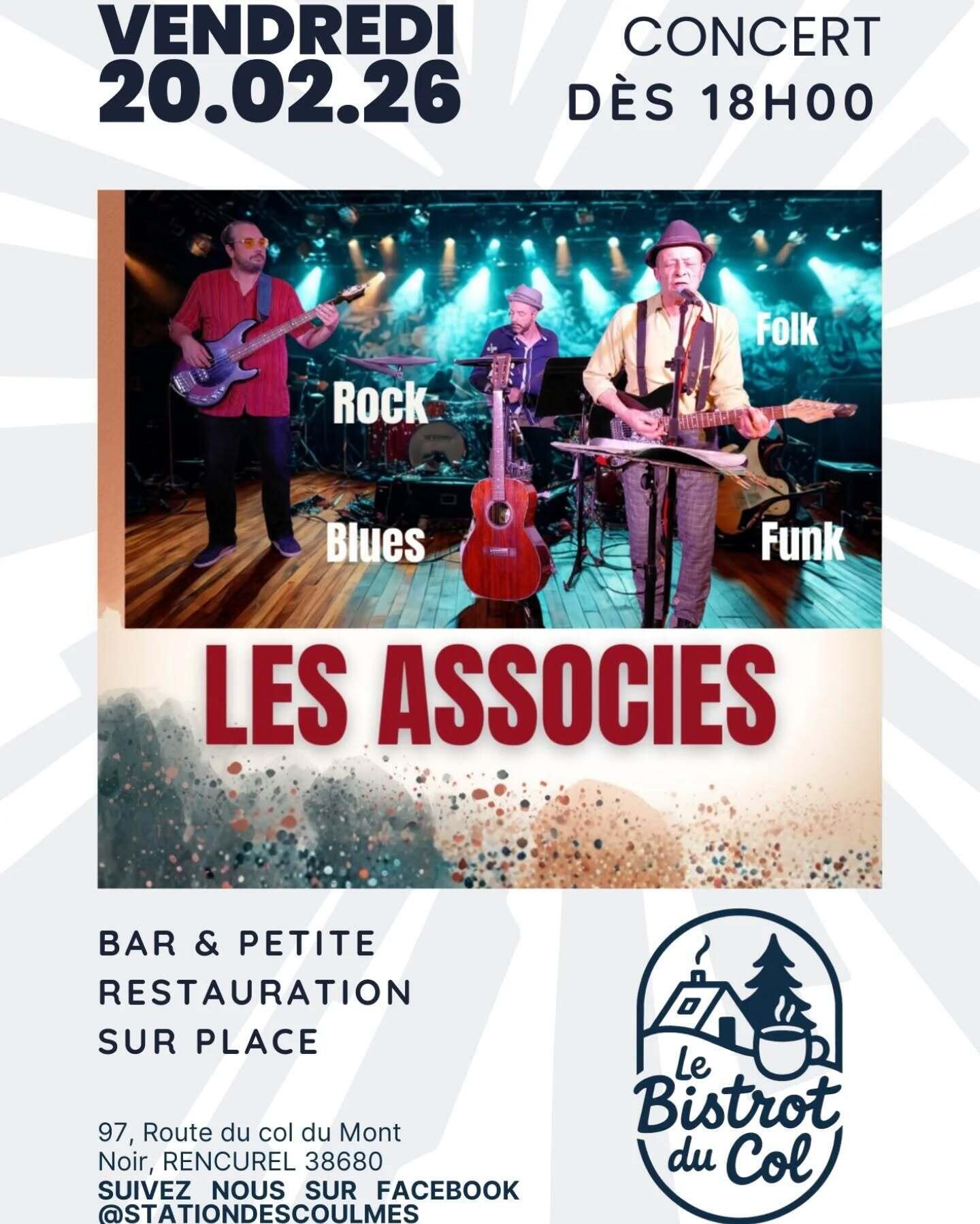 Concert de musique Rock, Blues, Folk et Funk avec le groupe Les Associés. Bar et petite restauration sur place.